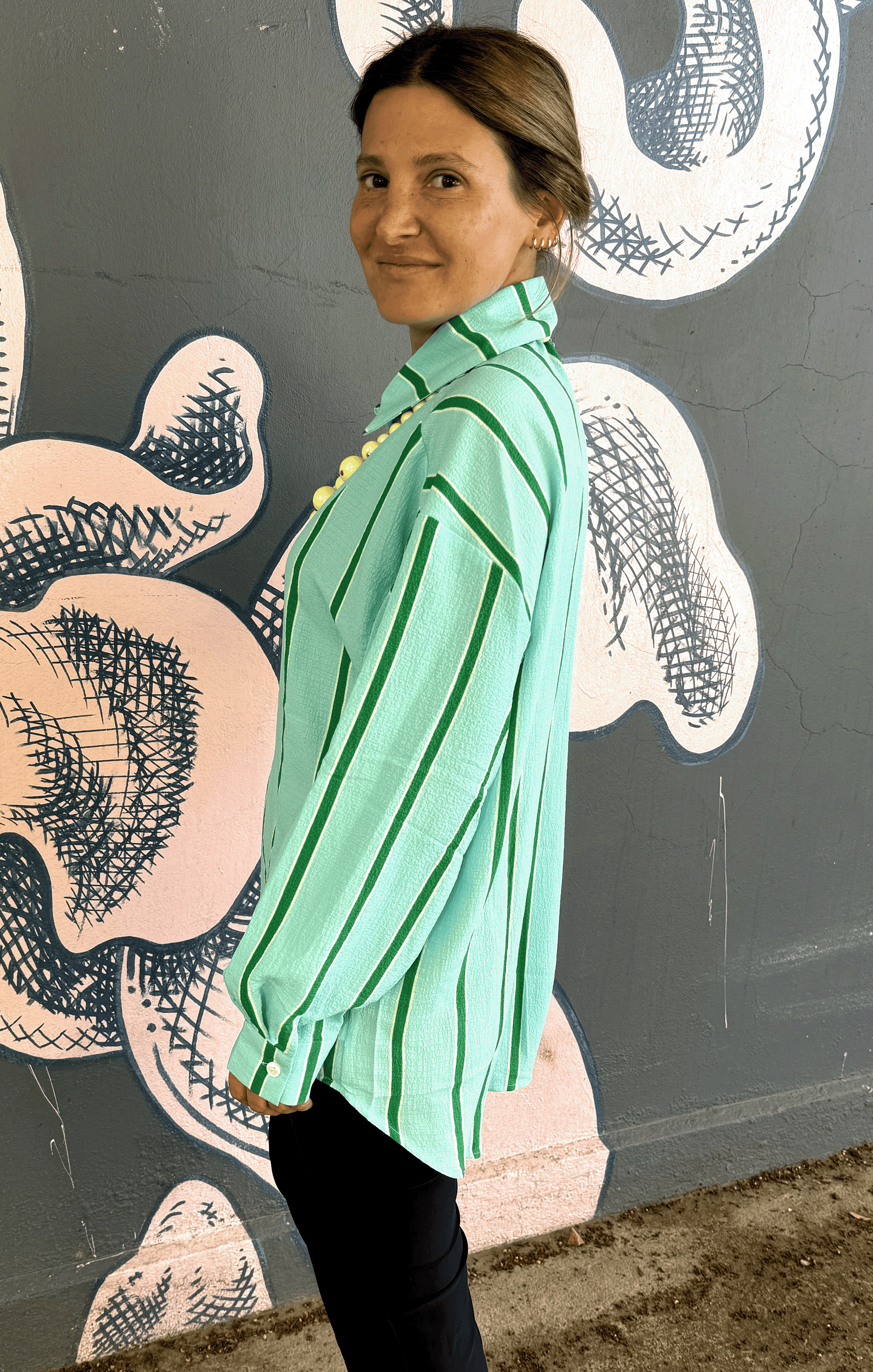 Prenda fresca y versátil. Confeccionada en suave viscosa, ofrece un calce oversize que se adapta cómodamente a diferentes cuerpos, brindando libertad de movimiento y un estilo relajado pero sofisticado. Ideal para combinar con calzas Ema, faldas o jeans, convirtiéndose en la pieza estrella de tus looks de temporada.