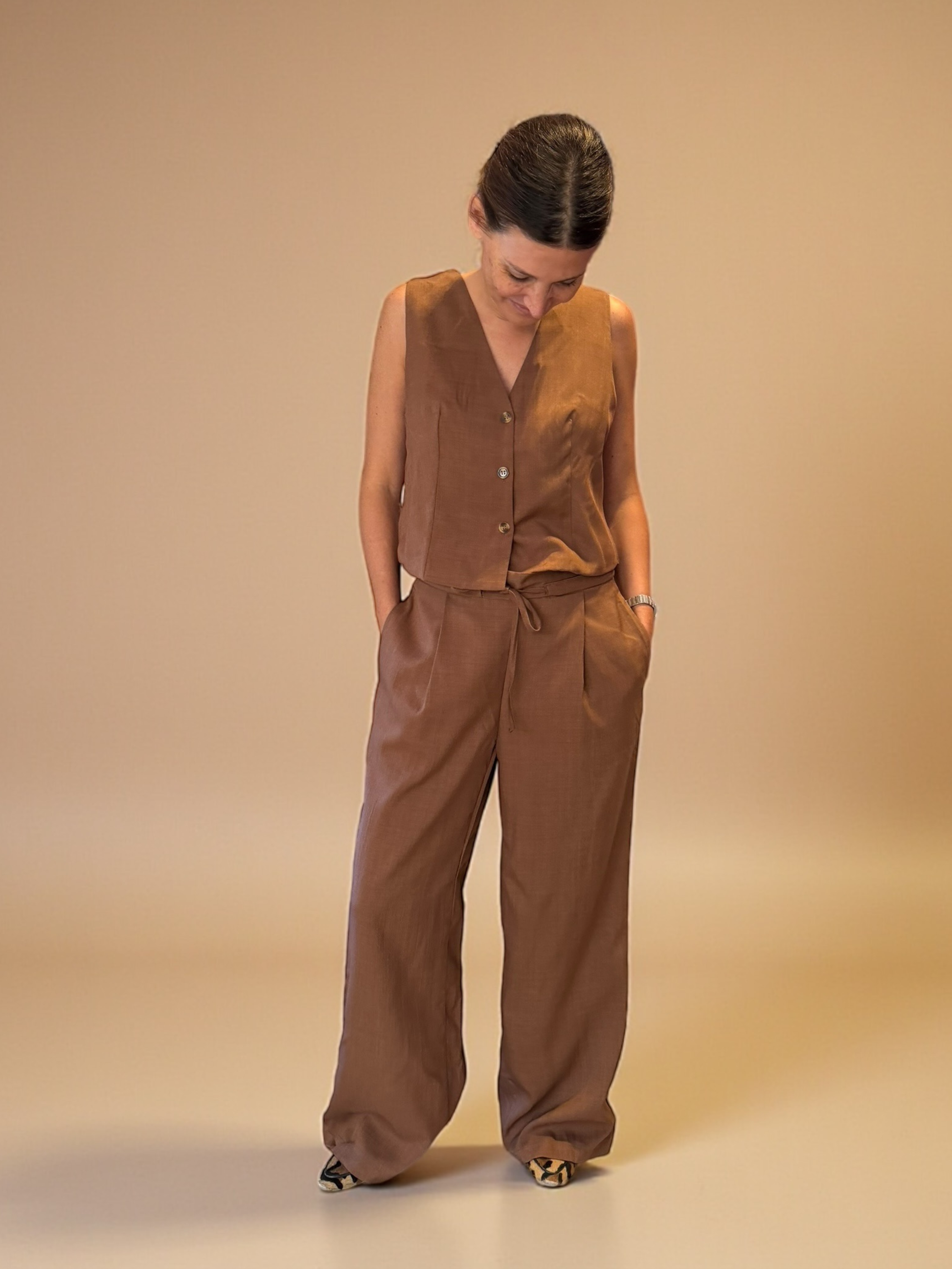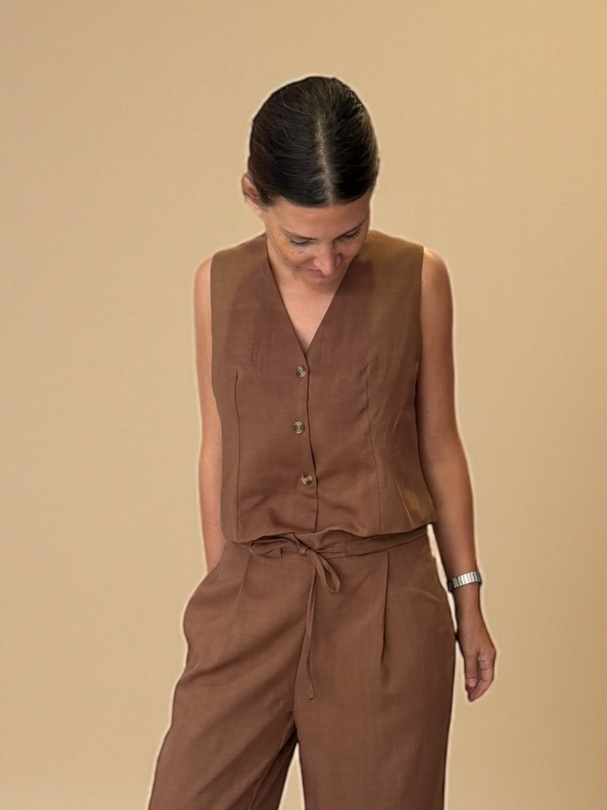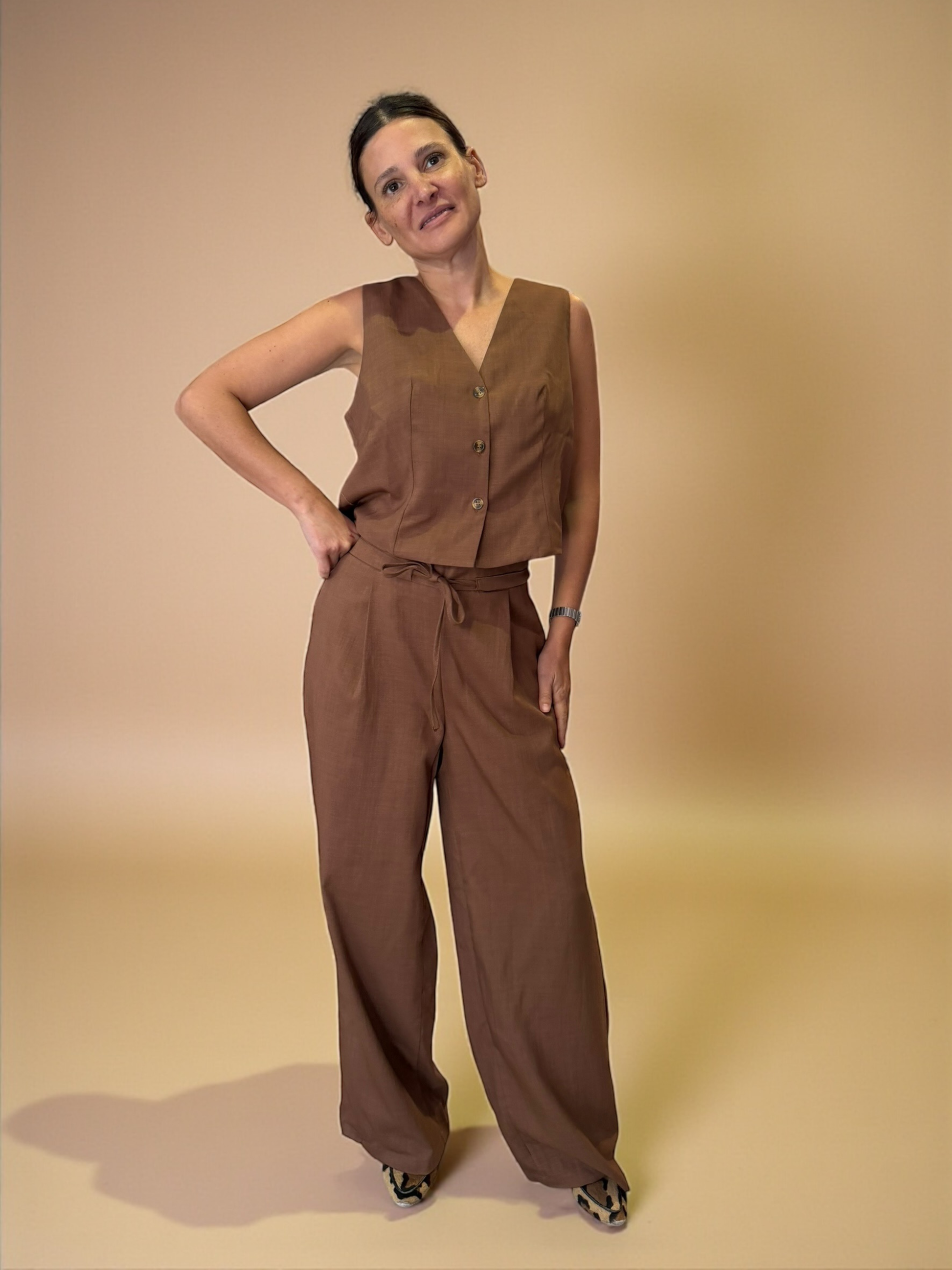 Precioso gillette de lino, perfecto para hacer match con su pantalón Amanda.