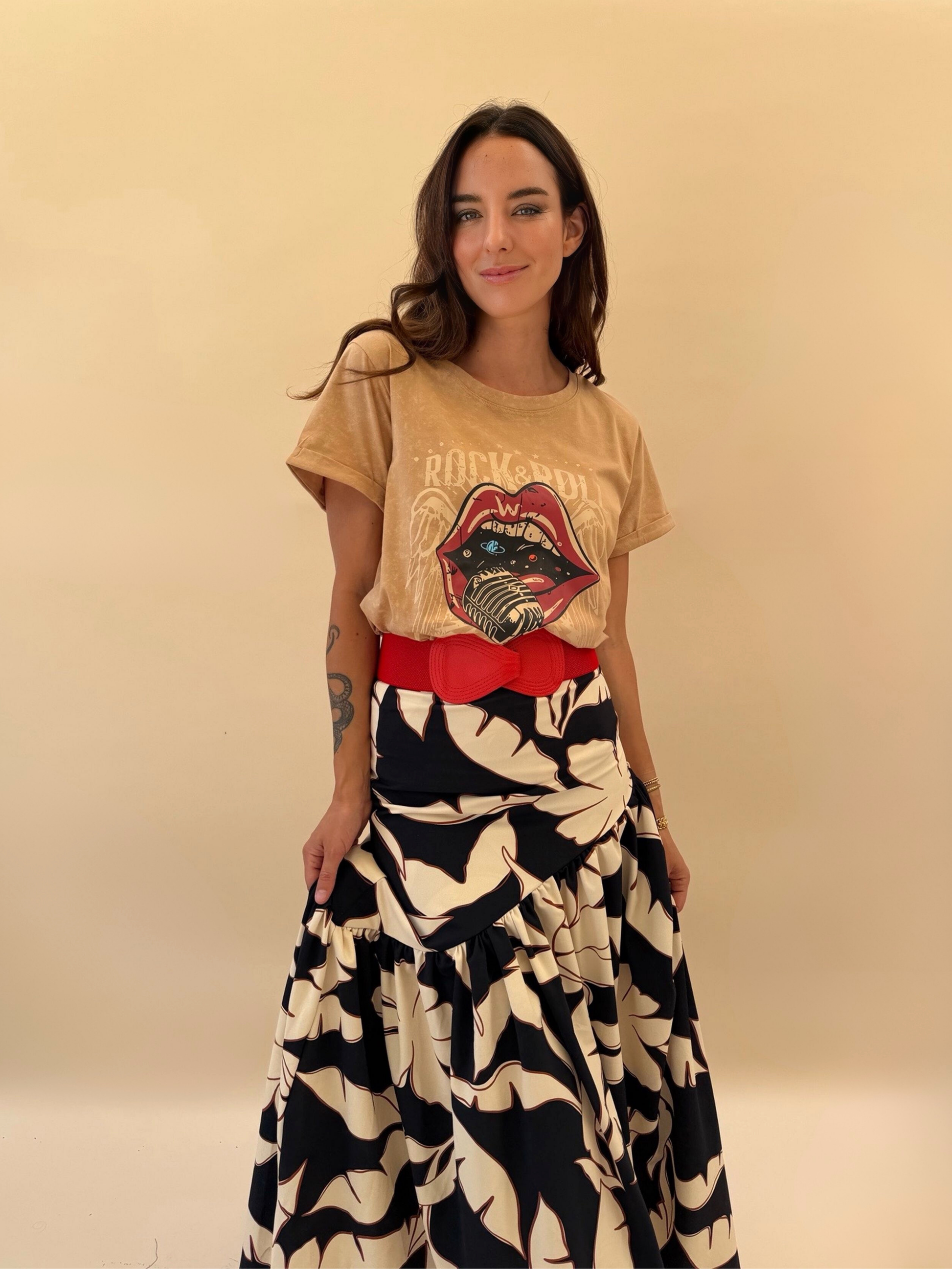 Polera estampada de calce oversized, perfecta para tu día a día. Cómoda, versátil y fácil de combinar con todo. Talla única.
